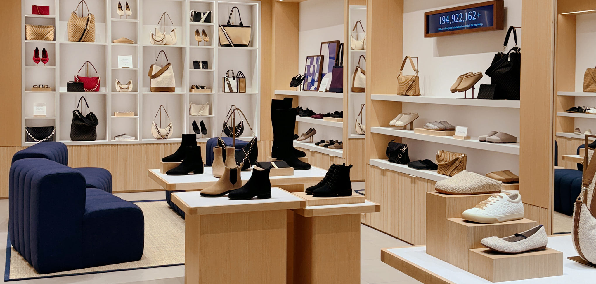 Step into our NorthPark store—located among a selection of luxury boutiques and beloved brands—and discover stylishly sustainable shoes and bags made from recycled plastic bottles.