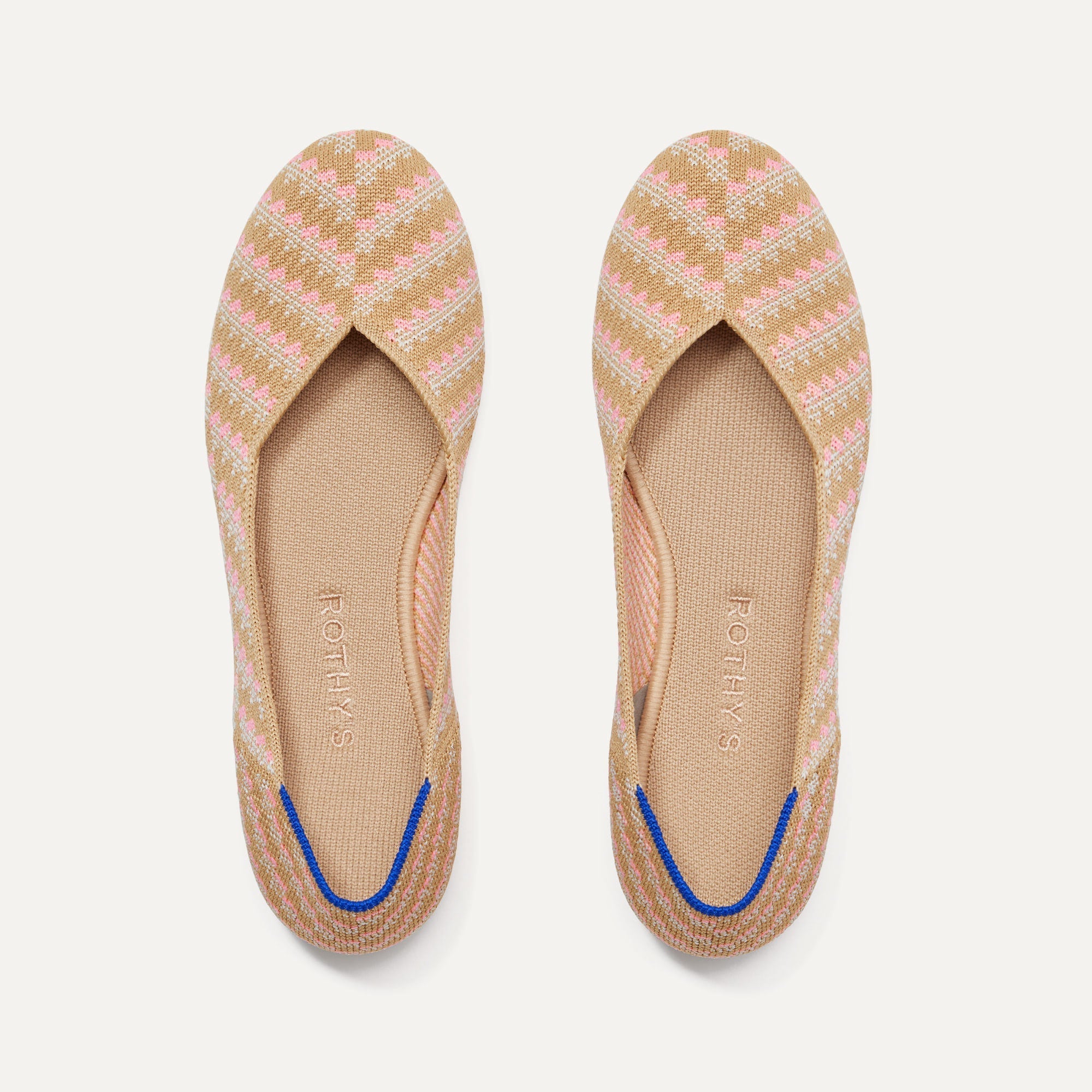 • Soft, flexible upper in a tan, beige and pink chevron pattern.